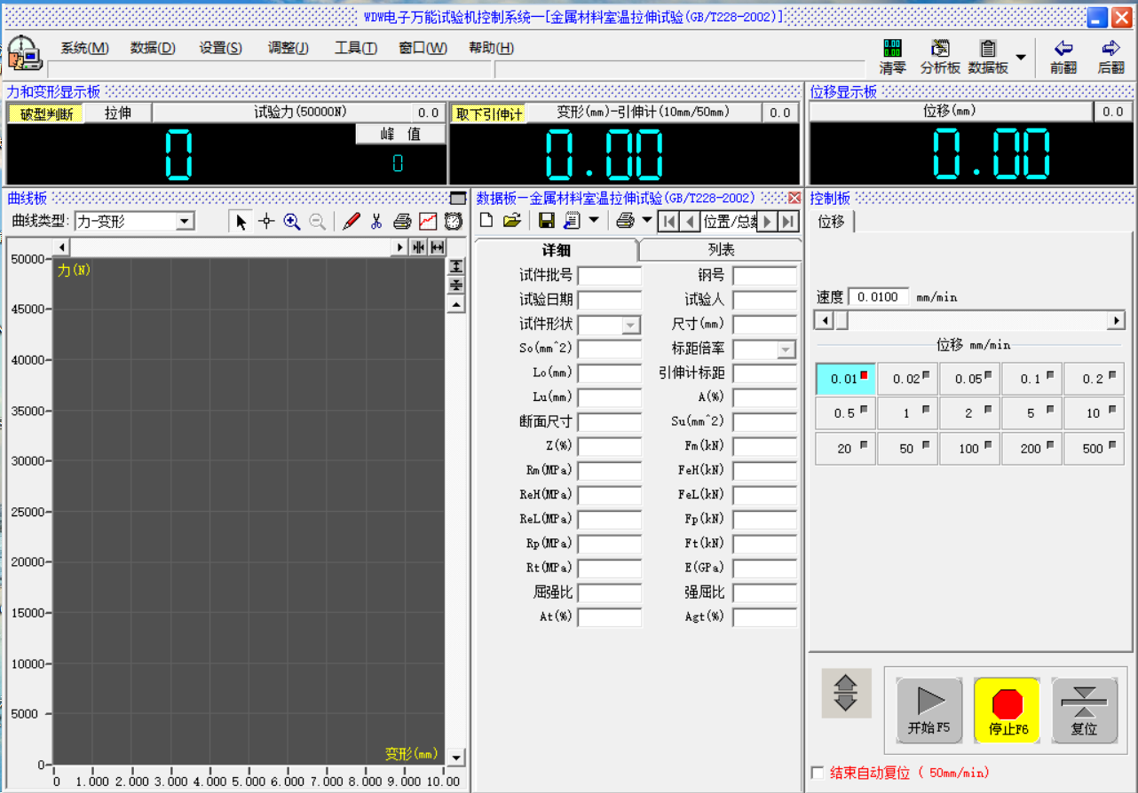 8、動(dòng)態(tài)顯示:測(cè)試過(guò)程中,負(fù)荷、伸長(zhǎng)、位移及選中的試驗(yàn)曲線隨著測(cè)試的進(jìn)行,實(shí)時(shí)動(dòng)態(tài)顯示在主控屏幕上。